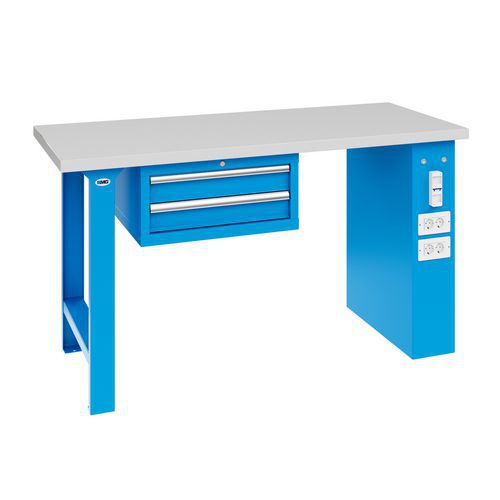 Struttura metallica robusta con finiture di qualità. Cassetti ad estrazione parziale con portata 100 kg. Scegli il materiale del tuo piano di lavoro tra : listellare, multistrato, laminato e urphen. Gamba scatolata con impianto elettrico e pneumatico.