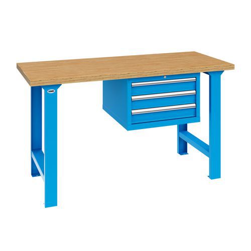 Struttura metallica robusta con finiture di qualità. Cassetti a estrazione parziale con portata 100 kg. Scegli il materiale del tuo piano di lavoro tra: listellare, multistrato, laminato e urphen.