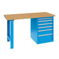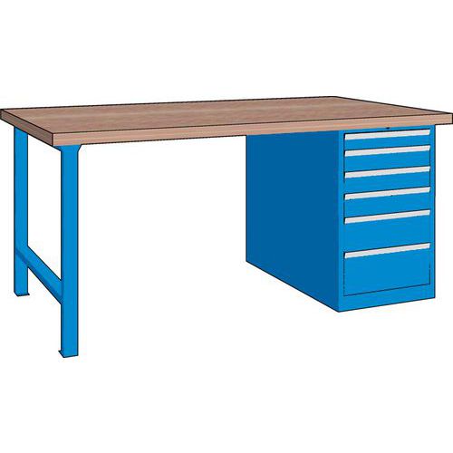 Struttura metallica robusta con finiture di qualità. Cassetti a estrazione parziale con portata 100 kg. Scegli il materiale del tuo piano di lavoro tra: listellare, multistrato, laminato e urphen.