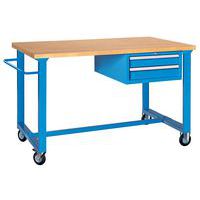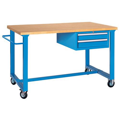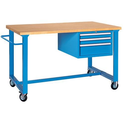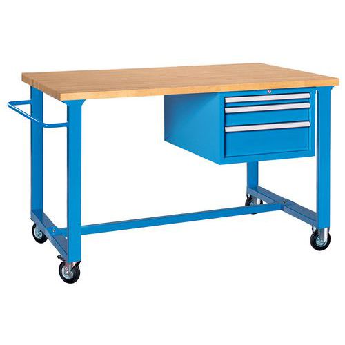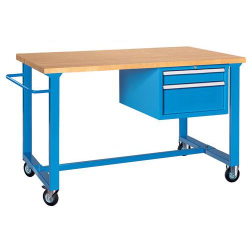 Struttura metallica robusta con finiture di qualità. Cassetti a estrazione parziale con portata 100 kg. Scegli il materiale del piano di lavoro tra: listellare, multistrato, laminato e urphen. Ruote con diamento 125 mm: 2 fisse e 2 girevoli.