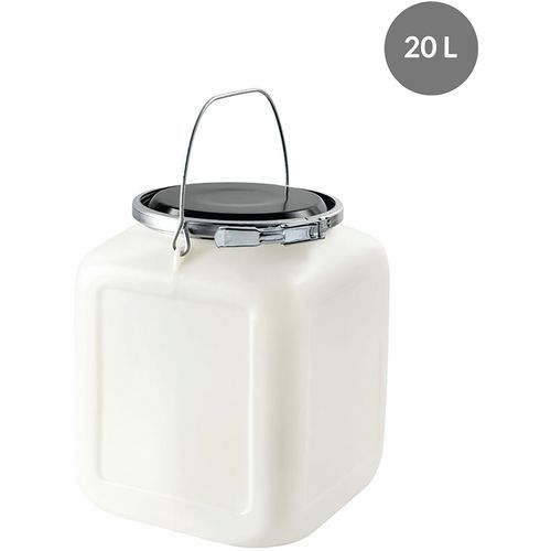 | Descrizione | Barattolo con chiusura in metallo, Capacità: 20 L, Colore: Bianco, Ø: 215 mm, Lunghezza: 280 mm |