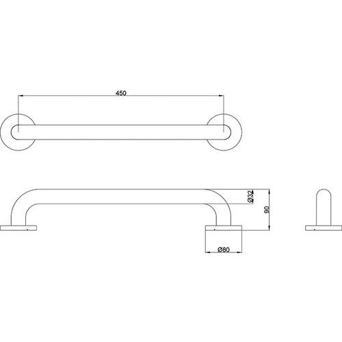 Barra di sostegno, Materiale: Inox, Tipo fissaggio: Da avvitare, Lunghezza: 45 cm, Ø barra: 32 mm
