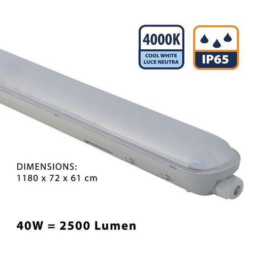 Plafoniera a tenuta IP65 con led integrati 21W, 2500 lm, super luminosa. Dotata di pressacavo di ingresso e uscita per montaggio in serie. Eccellente per gli ambienti umidi come garage, cantine e lavanderie. Adatta a zone esterne esposte a getti d'acqua diretti e alla penetrazione delle polveri sottili. Struttura e diffusore in policarbonato.
