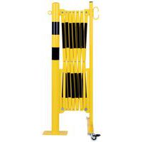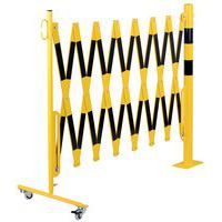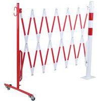 Barriera allungabile in acciaio con rotelle e palo rotondo. Strisce bicolore per una maggiore visibilità. Adatto solo per uso interno. Facile da maneggiare, riporre e utilizzare grazie alle sue ruote con freno. Certificato TÜV. Base 120x195 mm.