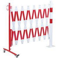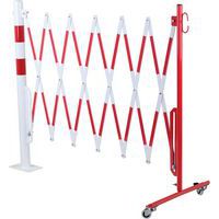 Barriera allungabile in acciaio con rotelle e palo rotondo. Strisce bicolore per una maggiore visibilità. Adatto solo per uso interno. Facile da maneggiare, riporre e utilizzare grazie alle sue ruote con freno. Certificato TÜV. Base 120x195 mm.