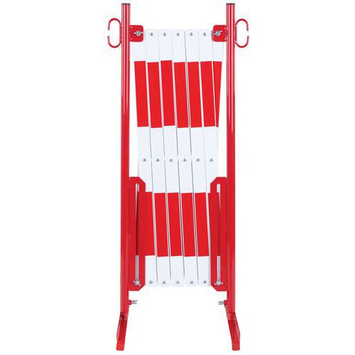 Barriera allungabile in acciaio con gambe su 2 lati che consente la chiusura temporanea di una zona pericolosa. L'alternanza dei colori attira l'attenzione degli utenti e segnala pericoli. Possibilità di collegare diverse barriere tra loro. Occupa poco spazio quando piegato. Certificato TÜV.