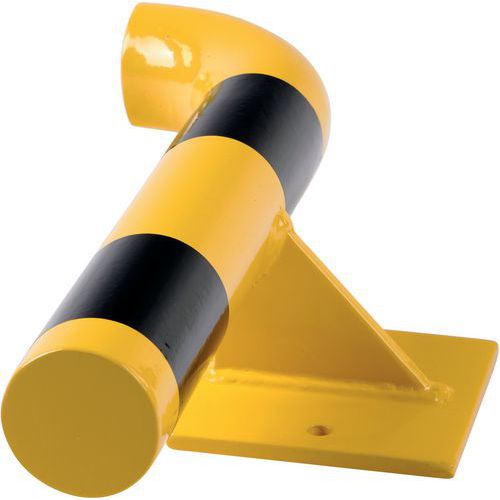 Robusto barriera di protezione a parete in acciaio, che assorbe efficacemente gli urti. Buona visibilità grazie al suo colore giallo/nero. Acciaio laccato per garantire una durata adeguata. Facile installazione grazie al suo fissaggio su piastra di ancoraggio. Certificato TÜV. Base 195x120 mm.