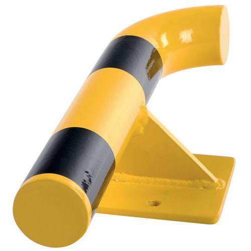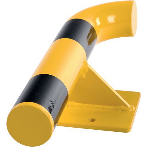 Robusto barriera di protezione a parete in acciaio, che assorbe efficacemente gli urti. Buona visibilità grazie al suo colore giallo/nero. Acciaio laccato per garantire una durata adeguata. Facile installazione grazie al suo fissaggio su piastra di ancoraggio. Certificato TÜV. Base 195x120 mm.