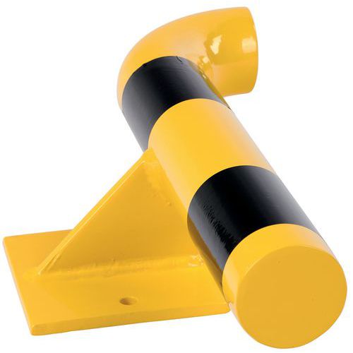 Robusto barriera di protezione a parete in acciaio, che assorbe efficacemente gli urti. Buona visibilità grazie al suo colore giallo/nero. Acciaio laccato per garantire una durata adeguata. Facile installazione grazie al suo fissaggio su piastra di ancoraggio. Certificato TÜV. Base 195x120 mm.
