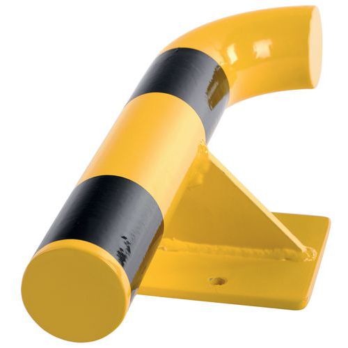 Robusto barriera di protezione a parete in acciaio, che assorbe efficacemente gli urti. Buona visibilità grazie al suo colore giallo/nero. L'acciaio galvanizzato offre una maggiore resistenza all'abrasione e alla corrosione. Facile installazione grazie al suo fissaggio su piastra di ancoraggio. Base 195x120 mm.