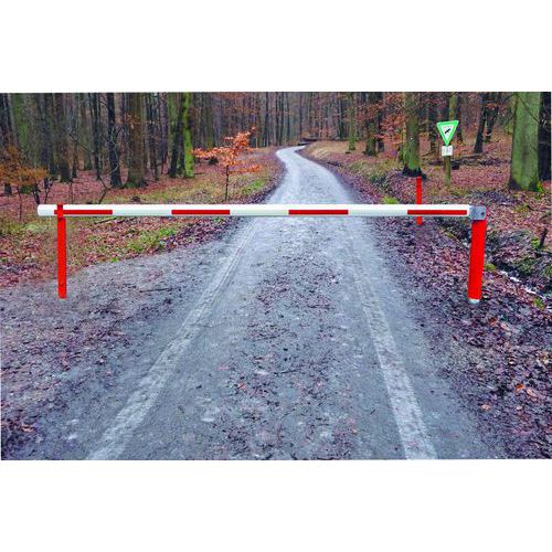 Barriera girevole WES 215 manuale in acciaio laccato epossidico. Con strisce catarifrangenti rosse. Barriera con 2 supporti per correnti regolabili per consentire la rotazione in base alle vostre esigenze. Sistema pre-forato per la chiusura con lucchetti. Ideale per delimitare uno spazio e impedire la possibilità di passaggi e chiudere un luogo di sosta.