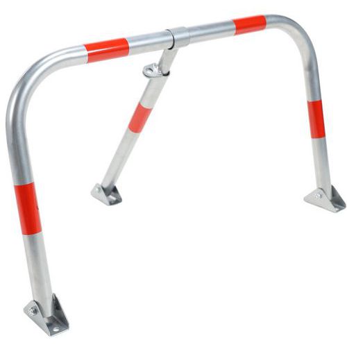 Barriera per parcheggio colore grigio. Progettata per proteggere gli spazi di parcheggio limitando l'accesso ai veicoli autorizzati. Posa facile e rapida della barriera. Tubo zincato con 5 strisce catarifrangenti sulla barriera. Robusta e resistente.