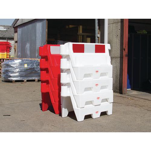 Non limitato a una connessione in linea retta. Ogni barriera può ruotare nel suo punto di connessione fino a 45° per consentire a 8 barriere di formare un cerchio o una mini rotonda.