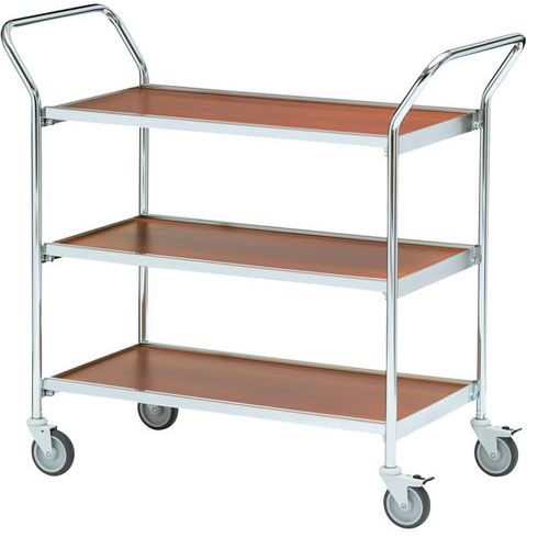 Base carrellata con finitura cromata, 3 ripiani 1000x420 mm e 2 maniglie di spinta.