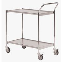 Base carrellata con finitura cromata, 2 ripiani 800x420 mm e maniglia di spinta.