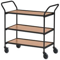 Base carrellata con struttura in finitura nera, 3 ripiani e 2 maniglie di spinta.