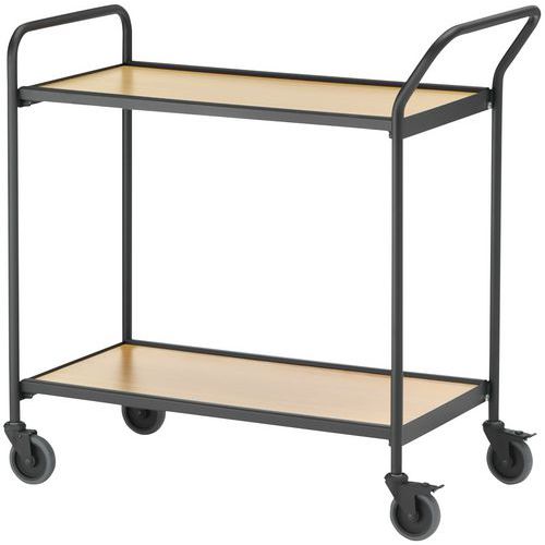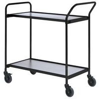 Base carrellata con struttura nera - 2 ripiani con maniglia di spinta e archetto tubolare.