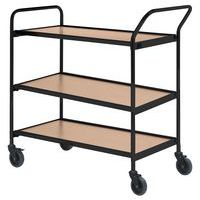 Base carrellata con struttura nera, 3 ripiani con maniglia di spinta e archetto tubolare.