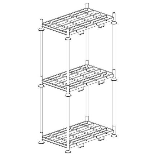 Importante: la scaffalatura Manurack è dotata di un ripiano con 4 piedi. Per realizzare una struttura a più livelli, è necessario ordinare tante basi Manurack I quanti sono i livelli desiderati e 4 montanti a tubo Manurack (supporti). Attenzione: tenere presente che più il tubo è lungo, più i livelli di impilaggio consentiti sono ridotti: Manurack semplice, carico 1500 kg per livello: tubi 1050 mm, altezza utile sotto calotta 870 mm: impilaggio 3/1, tubi 1680 mm, altezza utile sotto calotta 1500 mm: impilaggio 3/1, tubi 2100 mm, altezza utile sotto calotta 1920 mm: impilaggio 1/1, Manurack doppio I, carico 2000 kg per livello: tubi 1050 mm, altezza utile sotto calotta 870 mm: impilaggio 2/1, tubi 1680 mm, altezza utile sotto calotta 1500 mm: impilaggio 2/1, tubi 2100 mm, altezza utile sotto calotta 1920 mm: impilaggio 1/1. Nota: il modello doppio è dotato di guide per le forche.
