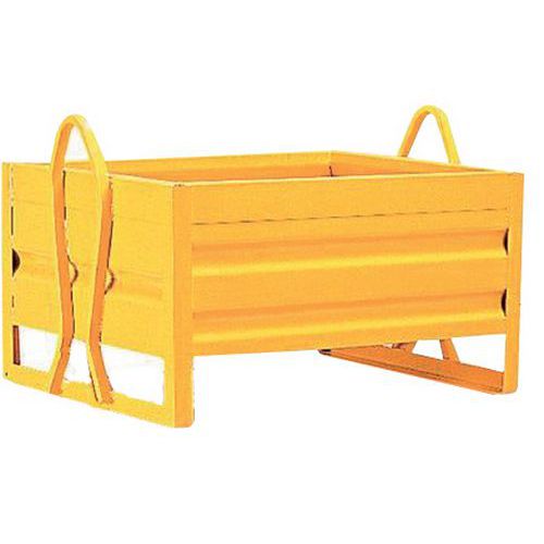 La benna ribaltabile è accatastabile o facile da fissare con l'ausilio di un paranco. È possibile spostarla con un transpallet o un carrello elevatore. Realizzato in Francia Garanzia Cliente : 3 anni Carico max. (kg) : 2000