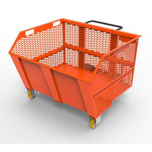Benna retata con supporto forconabile, Ruote e manico (già montati) e supporto zincato forato di drenaggio.