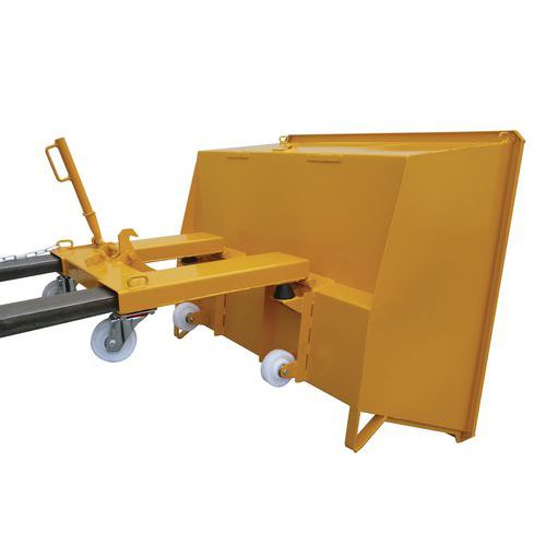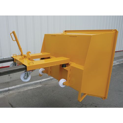 Benna ribaltabile ad altezza ridotta su ruote per un trasporto facile e sicuro.