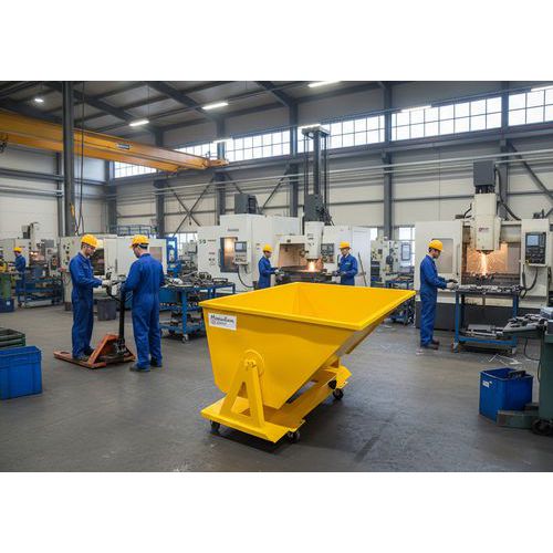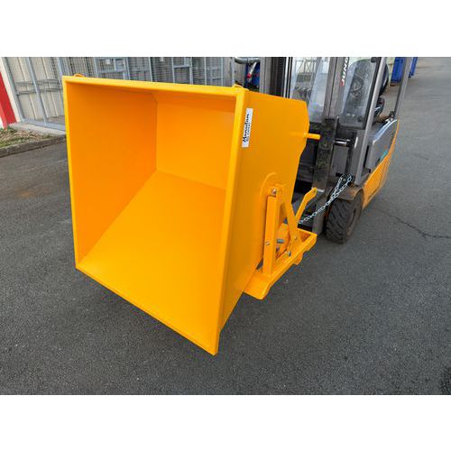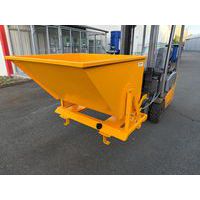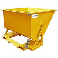 Benna ribaltabile con scarico a terra con o senza carrello elevatore. Attivazione manuale a leva. Versione intercambiabile con o senza ruote. Ingombro ridotto. Pratica per piccoli volumi.