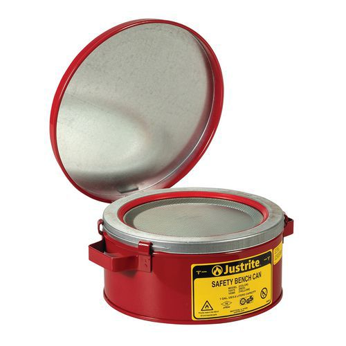 Per la pulizia di pezzi di piccole dimensioni in liquidi infiammabili come i solventi. Griglia incorporata che funge da para-fiamma. Protezione contro l'evaporazione del liquido grazie al coperchio del bidone. Rivestito con una finitura resistente ai prodotti chimici.