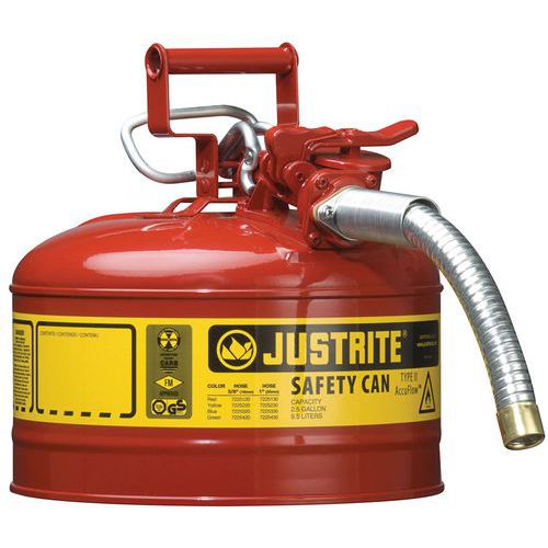 - Bidone di sicurezza con tubo metallico flessibile per controllare la portata del liquido in tutta sicurezza.