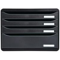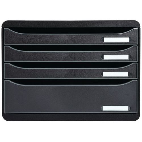 - Portadocumenti singolo 4 cassetti per documenti in formato A4+, fra cui 1 cassetto con altezza MAXI per riporre materiale da ufficio e scrivania.