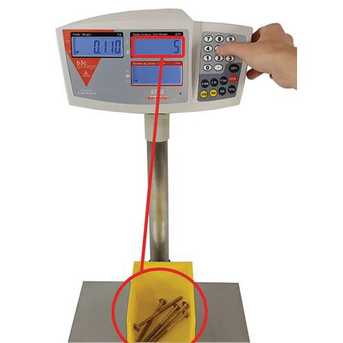- Con 3 display separati (peso lordo/netto, peso di riferimento e numero totale di pezzi).