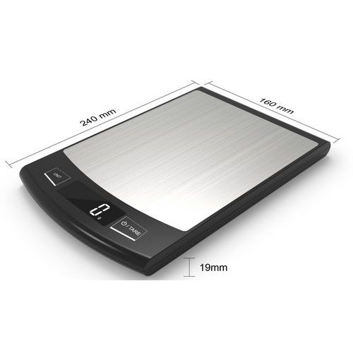 | Descrizione | Bilancia di design in inox, Metrologia legale: no, Tipo di bilancia: Pesalettere e pacchetti, Portata: 5 kg |
