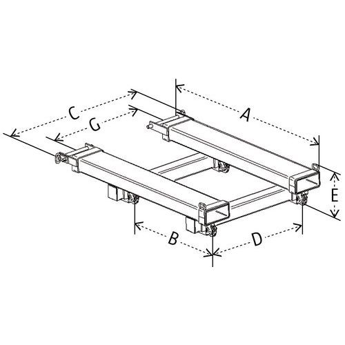Modello 2: con presa per forca per il montaggio diretto sulle forche del carrello elevatore e sistema di blocco sulle basi.