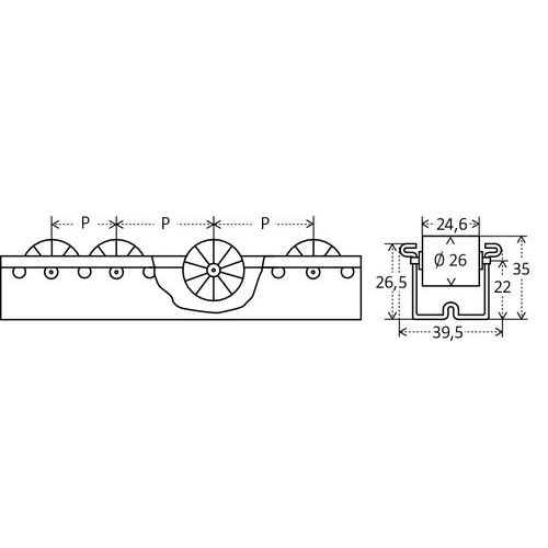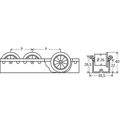 Binario a rulli in plastica - Carichi leggeri - Lunghezza 3000 mm - Bito