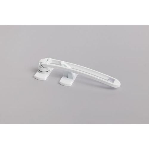 Blocca finestra ripiegabile verticalmente contro lo stipite della porta quando non in uso. Dotato di smorzatore di rumore. Può essere installato su porte a filo o a battente sovrapposto.
