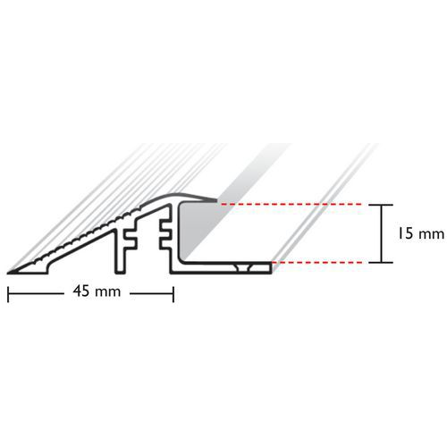 | Descrizione | Bordo alluminio per tappeto a griglia Vynagrip, Materiale: Alluminio, Larghezza: 4.5 cm |