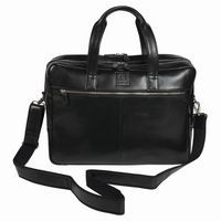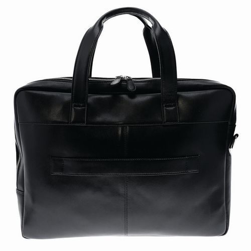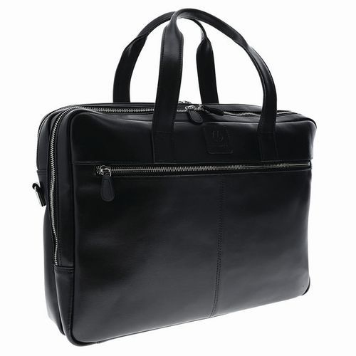 Borsa a tracolla in pelle nera per portatile, Materiale: Cuoio, Colore: Nero, Modello: Doppio scomparto