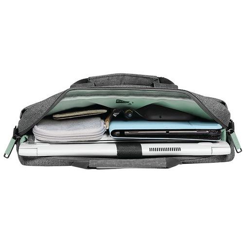 Borsa per computer, compatta e ultraleggera. Struttura interamente imbottita per una protezione ottimale. Scomparto per computer interno imbottito con cinghia di sicurezza. Grande scomparto per documenti, organizer per penne e accessori. Tracolla imbottita regolabile e rimovibile, 2 maniglie nella parte alta. Ampia tasca con zip per accedere rapidamente ad articoli e accessori. Realizzata in tessuto di qualità, fibbia metallica di ottima finitura, ultraresistente.