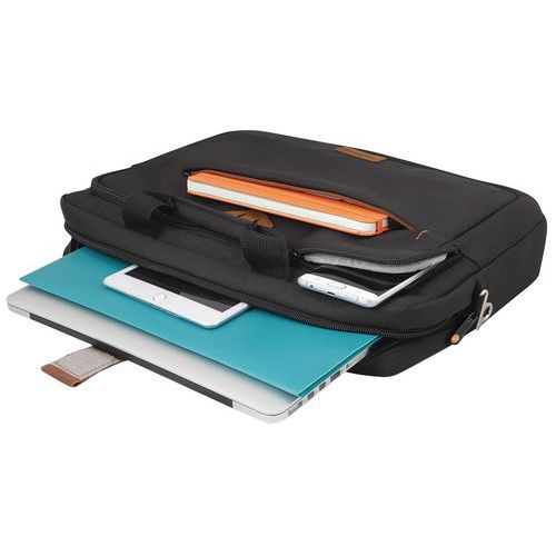 Borsa per pc portatile con scomparto dedicato per tablet fino a 10,5. Pratica e sicura con cinghia di fissaggio per lo scomparto per computer portatile. Dotata anche di uno scomparto per documenti e accessori vari. Comodi manici rinforzati, tasca anteriore e posteriore con chiusura lampo.