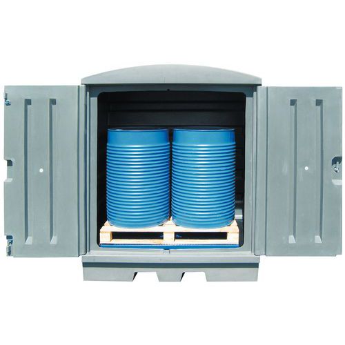 | Descrizione | Box in PEhd 280 litri, Capacità di ritenzione: 280 L, Capacità (n.di fusti): 2, Lunghezza totale: 1500 mm |