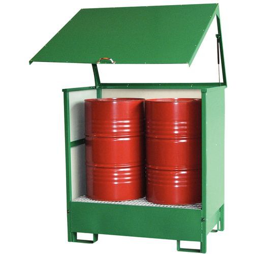- Armadio ideale per lo stoccaggio in sicurezza di fusti da 60 o 200 L all'interno di un edificio.