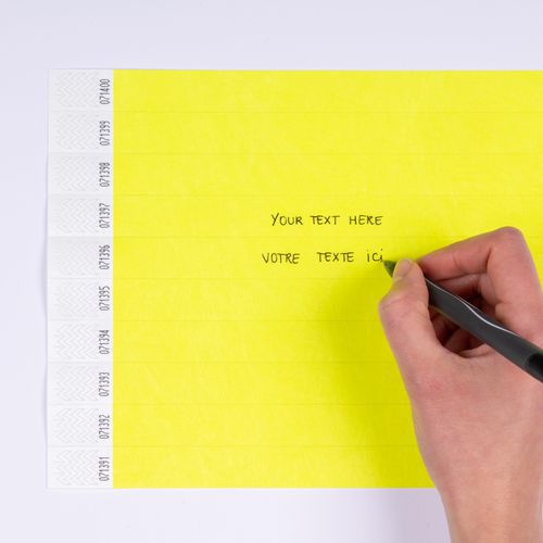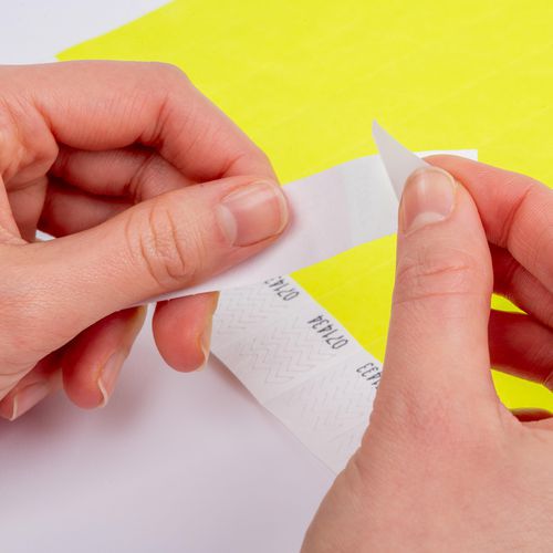 - Il braccialetto in Tyvek® è un mezzo semplice e sicuro per identificare i partecipanti durante eventi di un giorno o di una sera.