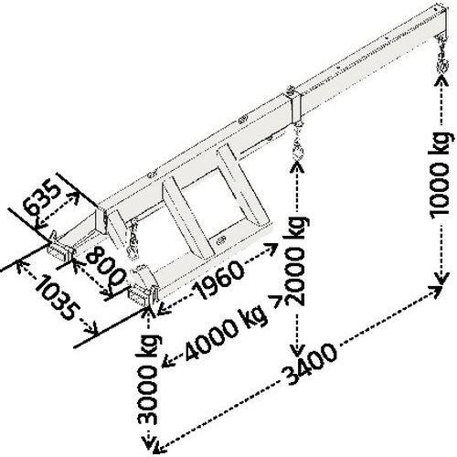 | Descrizione | Braccio telescopico per carrello elevatore a forche, Portata: 3000 kg, Larghezza totale: 1035 mm |