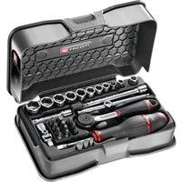 - Compatibile con il sistema di stoccaggio modulare FACOM: - Adatto per carrelli porta attrezzi CHRONO XL, CHRONO+, JET XL, JET+ e scatola MBOX.M. Contiene: 1 cricchetto da 1/2 impermeabile ad alte prestazioni: SL.161. 11 chiavi a bussola x 1/2 a 12 punti in pollici: S. 3/8' - 7/16' - 1/2' - 9/16' - 19/32' - 5/8' - 21/32' - 11/16' - 3/4' - 13/16' - 7/8'. 2 prolunghe da 1/2: L 130 mm (S.210) - L 250 mm (S.215). 1 giunto cardanico da 1/2: S.240A. Vassoio termoformato M (309 x 188 mm): PL.M05. Peso: 2,070 kg.