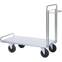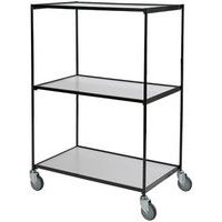 - Carrello con struttura grigia. 2 ripiani con maniglia di spinta. Ripiani laminati reversibili. Bordi tubolari da 22 mm e ripiano con spessore da 12 mm. Carico massimo per ripiano di 100 kg. Con 4 ruote girevoli di cui 2 con freno.