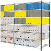 - Kit per scaffalatura da ufficio a 4 traverse, elegante, modulare e scalabile.