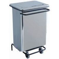 - Struttura e coperchio in inox brillante (AISI 304), accesso al sacco tramite apertura del coperchio, ampio pedale per utilizzo conforme al metodo HACCP, elastico fermasacco, due ruote in plastica anti-traccia (Ø 150 mm), stabile e maneggevole, telaio e componenti da assemblare, montaggio semplice e veloce.