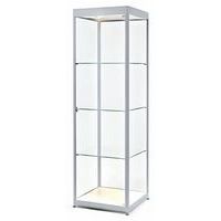 - Vetrina espositiva a colonna con illuminazione in alto. Struttura robusta e resistente. Vetro temprato di alta qualità su tutti i lati (anta e ripiani inclusi). Anta a battente con serratura di sicurezza. Vetrina fornita smontata.