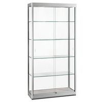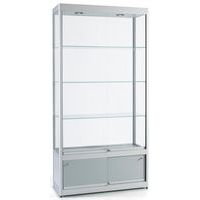 - Vetrina espositiva con illuminazione, pronta per l'uso. Struttura in alluminio robusta e resistente. Vetro temprato di alta qualità su tutti i lati (pareti, ante e ripiani). 2 porte scorrevoli con serratura di sicurezza. 2 faretti a Led sul soffitto, temperatura colore regolabile in 4 posizioni (2700/3000/4000/6000 K).