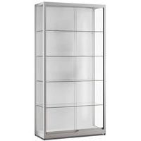 - Vetrina espositiva alta bianca pronta per l'uso. Vetro temprato di alta qualità su tutti i lati (anta e ripiani inclusi). Struttura robusta e resistente. Porte scorrevoli con serratura di sicurezza. Vetrina fornita montata.